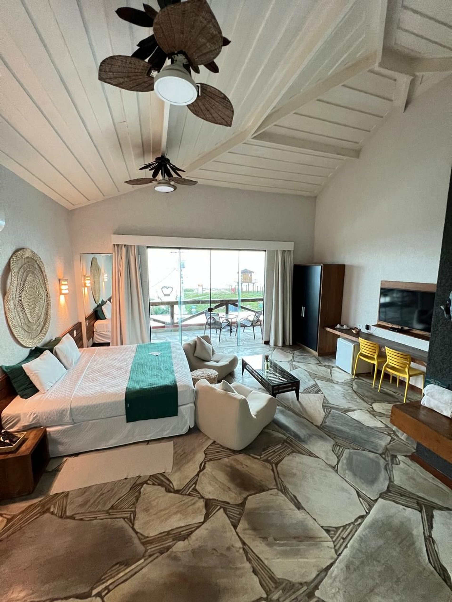 Ideal para quem viaja com a família, nossa Suíte Família oferece o equilíbrio perfeito entre conforto e praticidade. Com um ambiente espaçoso, a suíte acomoda até 4 pessoas com total comodidade, dispondo de uma cama de casal e duas camas de solteiro. Equipada com ar-condicionado, TV de tela plana e banheiro privativo, essa categoria é perfeita para famílias que desejam aproveitar ao máximo sua estadia na Pousada Pier Beach Club. A suíte também conta com uma área de estar aconchegante, criando o ambiente ideal para relaxar após um dia de diversão. Café da manhã não incluso. Disponível à parte no restaurante, servido no formato à la carte.